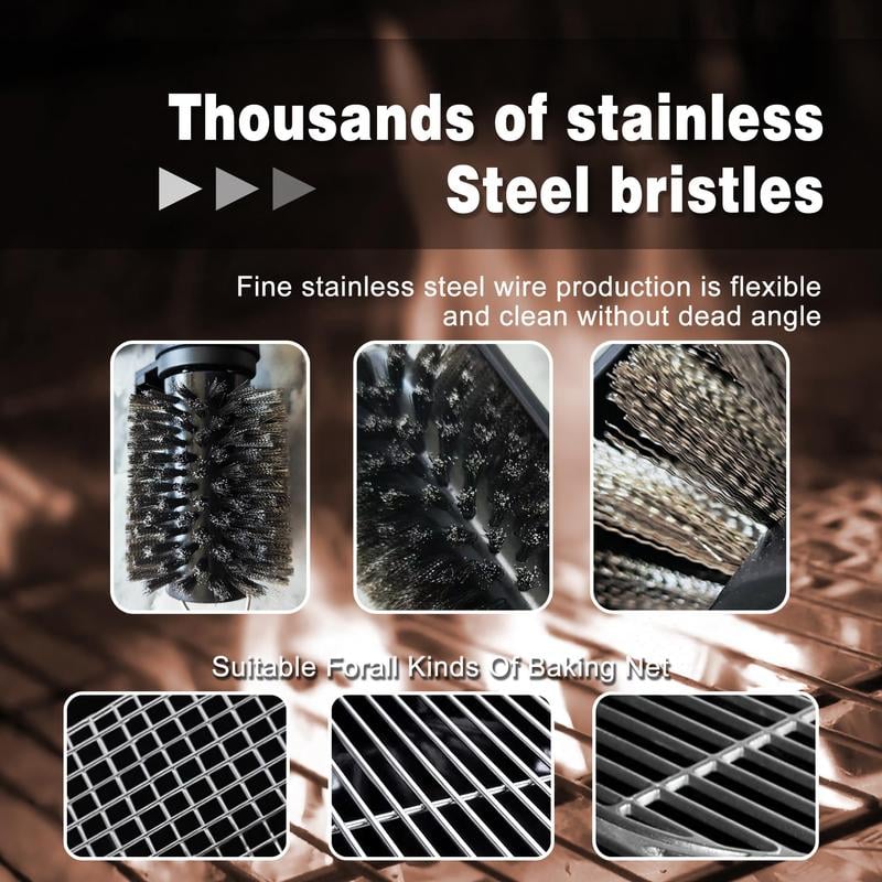 Ideal for backyard barbecues, campings, and patios parties, this cordless brush efficiently cleans nonrust steel, iron, or wire grills fronts in second.
